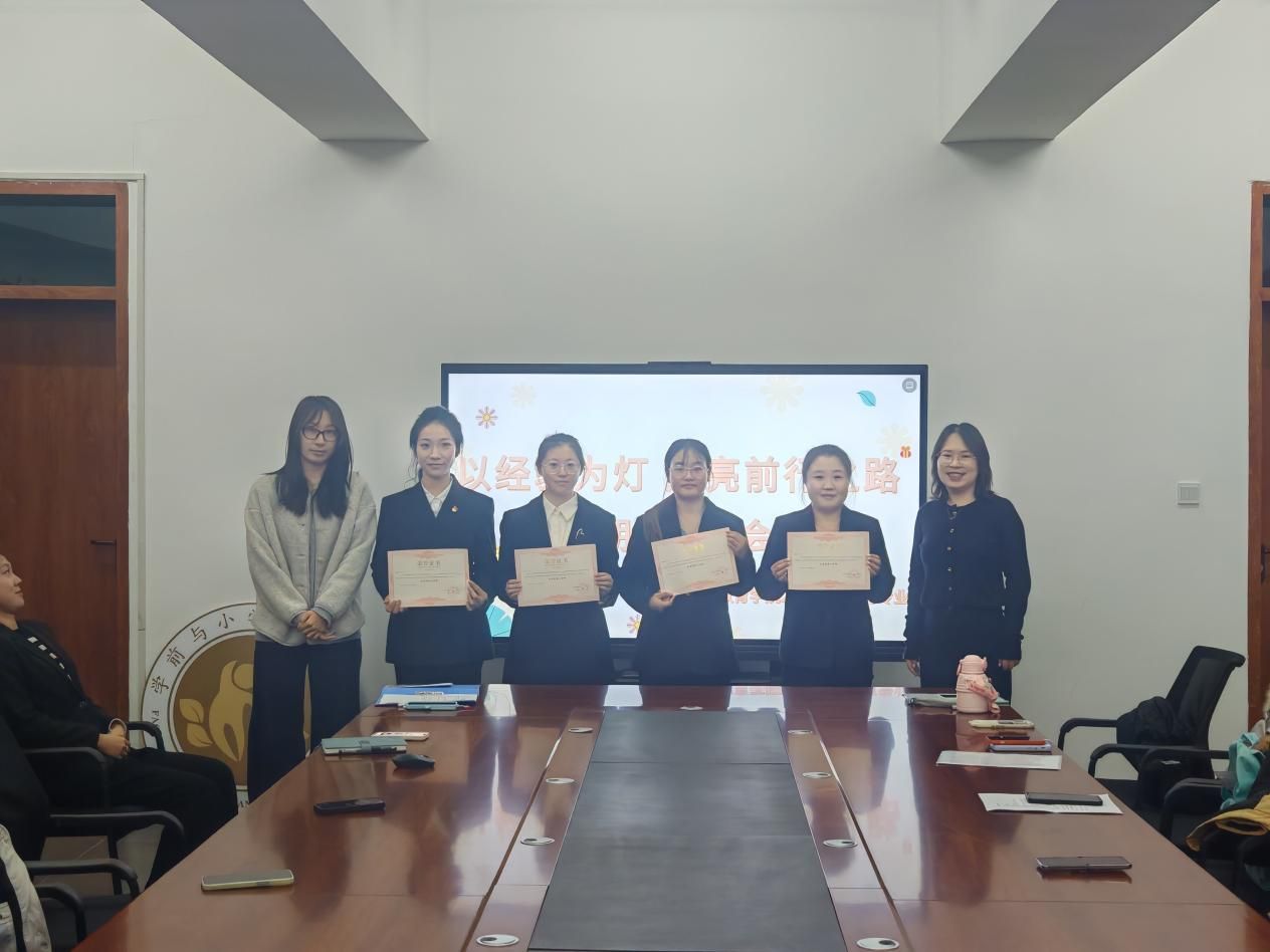 在分享环节结束后,高馨老师与朱滢羽老师共同为朱悦、王淼、郭莹、逄雨欣四位同学颁发“优秀朋辈小老师”荣誉证书,以表彰她们在本次分享会中的积极贡献与榜样力量。