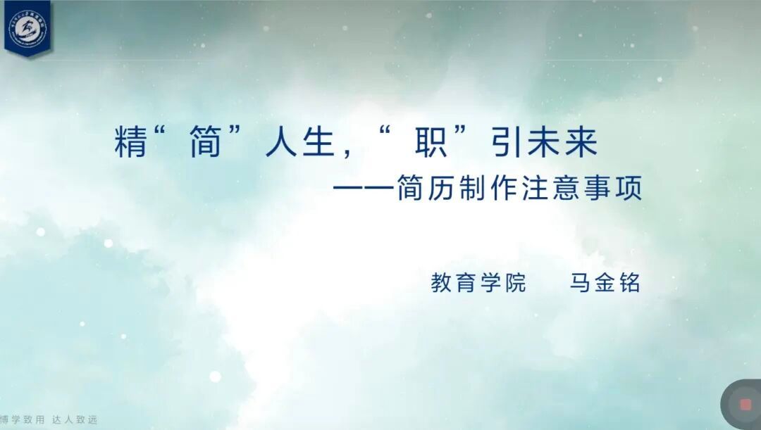 为助力毕业生提升求职竞争力,提前做好就业规划。教育学院于2025年11月17日19:00线上召开简历制作指导会议,本次会议由22级本科辅导员马金铭老师主讲,学院22级毕业生积极参会。