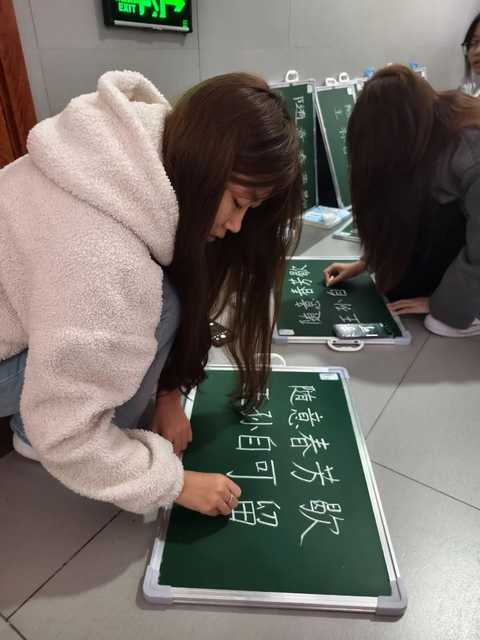 看,小伙伴们用粉笔在黑板上"跳舞"。黑板是未来教师的舞台,粉笔字是我们的"名片",一笔一画,或苍劲有力,或娟秀工整,方寸之间,已经隐隐有了未来人民教师的沉稳。