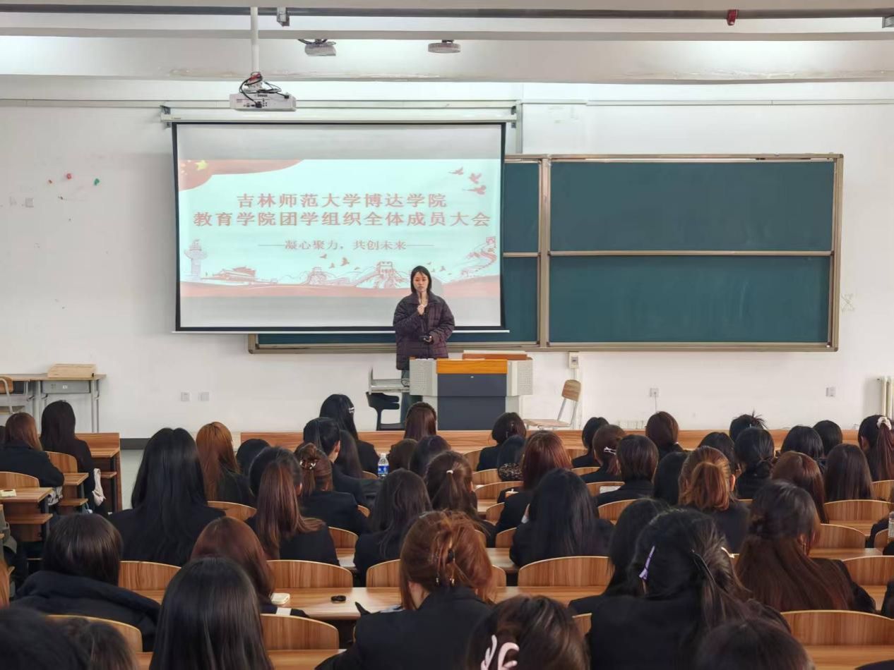 教育学院于2025年3月25日16点10分在综合楼1112教室召开团学组织全体成员大会。本次大会由辅导员王一波老师主持,团学组织全体成员参会。