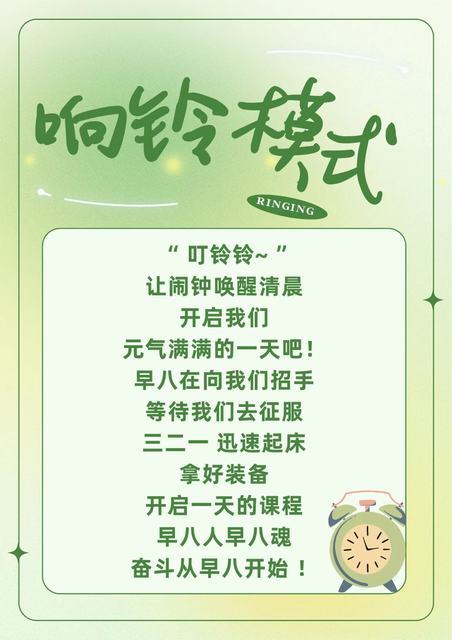 响铃模式:当清晨的第一缕阳光穿透云层,早八的铃声在校园的每个角落响起,我们知道,新的学期已经悄然拉开序幕。