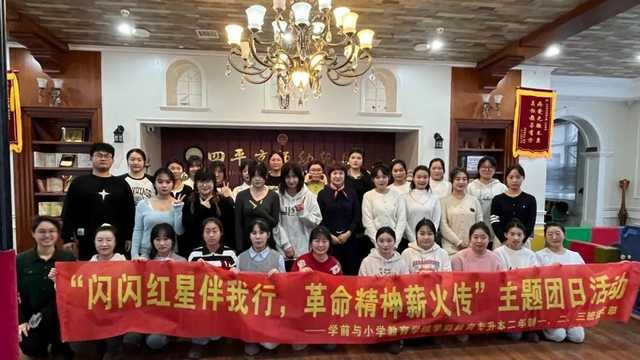 为了引导幼儿缅怀烈士功绩、弘扬烈士精神,培养爱国情怀和社会主义核心价值观,学前与小学教育学院于2024年11月27日在四平京师幼儿园举行了以“闪闪红星伴我行,革命精神薪火传”为主题的团日活动,旨在通过红色教育引导幼儿热爱祖国,热爱人民,培养他们的爱国情怀和民族自豪感。24级专升本辅导员王一波老师,行政助理徐硕老师及24级学前教育专升本二年制全体同学参加此次活动。
