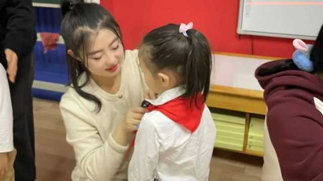 紧接着,活动进入了意义非凡的环节——给大班幼儿系红领巾。同学们细心地为每一位大班幼儿系上鲜艳的红领巾。在系红领巾的过程中,同学们耐心地向孩子们解释红领巾的意义,告诉他们红领巾是国旗的一角,是革命先烈用鲜血染成的,代表着荣誉和责任。给大班孩子系上红领巾的仪式,不仅是让幼儿提前适应小学生活的一个重要步骤,也是培养他们荣誉感和自豪感的关键环节。通过这一仪式,让幼儿们意识到自己作为未来小学生的身份,体验成为少先队员的荣誉,增强他们的自我价值感和集体归属感。红领巾的佩戴让孩子们为自己的成长和即将承担的责任感到自豪,激励他们在学习和生活中追求卓越,为成为优秀的小学生做好准备。