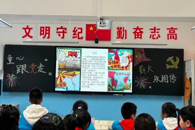 志愿者进入小学后,依次向同学们进行自我介绍并向他们讲解了中国少年先锋队和中国共产主义青年团以及中国共产党的相关知识。然后通过红色主题游戏、看红色经典影片猜历史人物和红色故事绘画接力与同学们进行互动,以加强学生们对红色文化的印象和理解。活动最后播放了动画片《那年那兔那些事儿》与同学们们道别。