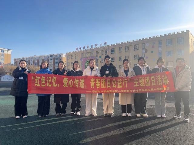 为了传承与弘扬中国红色英雄人物精神,激发学生的爱国热情,学前与小学教育学院于2024年11月20日下午13:30在四平市地直街小学组织了一场主题为“红色记忆,爱心传递,青春团日公益行”的团日活动,学前与小学教育学院24级专升本辅导员王一波老师,专职教师赵康然老师,行政助理徐硕老师及24级小学教育专升本三年制一班全体同学参加本次活动。
