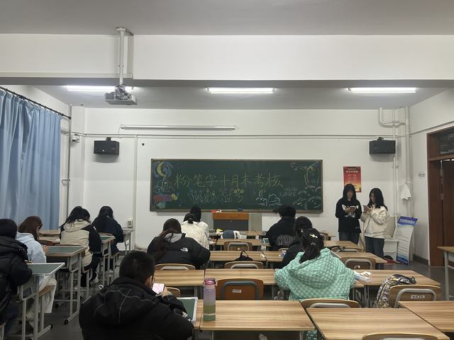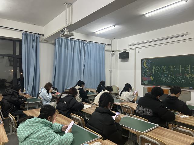 在这个充满诗意的季节里,我们迎来了学前与小学教育学院的月考,本次月考于2024年10月27日18:30在综合楼1302教室举行。本次月考的内容是用粉笔字默写古诗,这不仅是对学生文学素养的考验,也是对粉笔字书写的锻炼。
