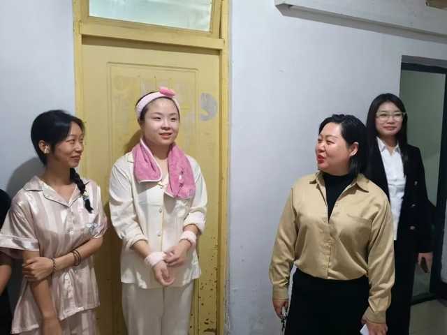 学前与学教育学院为帮助2024级新生尽快适应新环境,传递学院温馨问候,2024年9月1日晚上18:00学前与小学教育学院副院长王冰副教授,党总支书记汤鹏宇老师,2024级本专科辅导员高馨老师分别带队深入2024级新生宿舍进行走访慰问,随行人员有行政助理刘璇老师、徐硕老师和2024级新生部分班代。