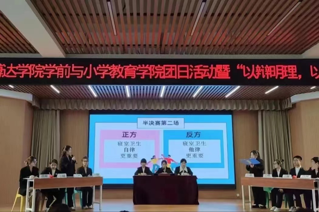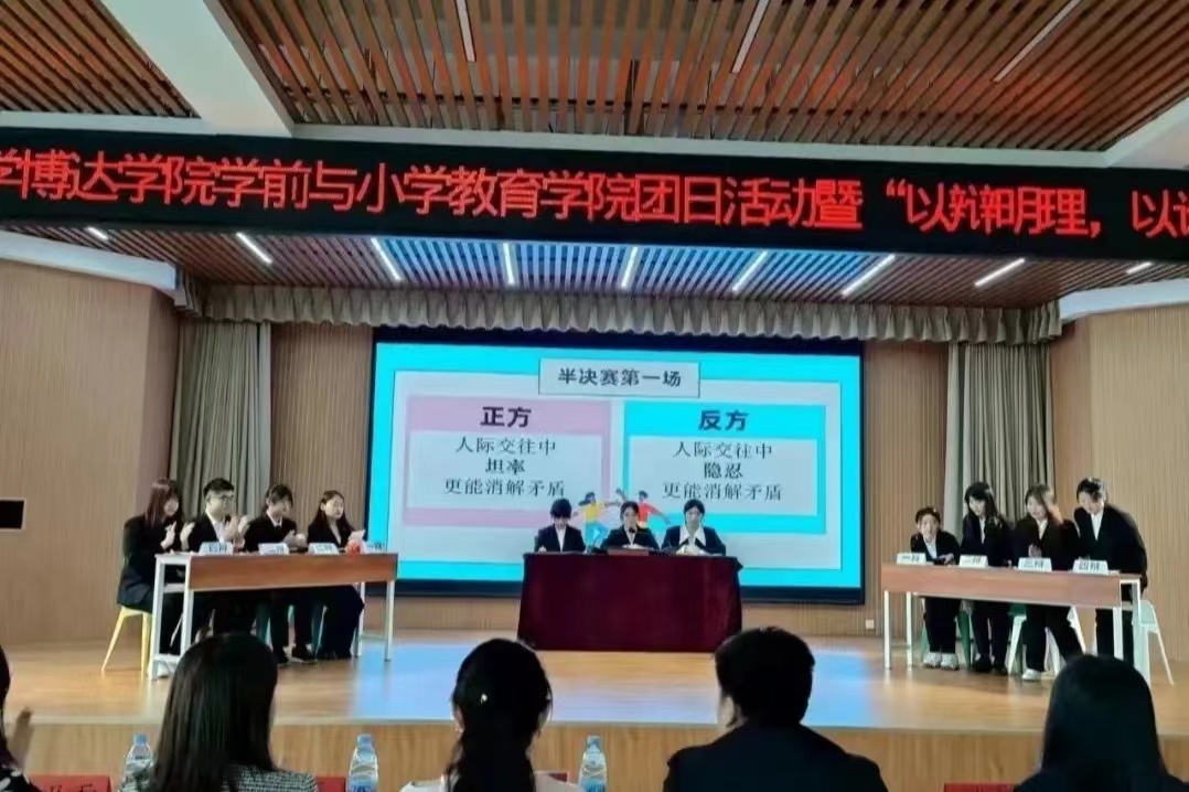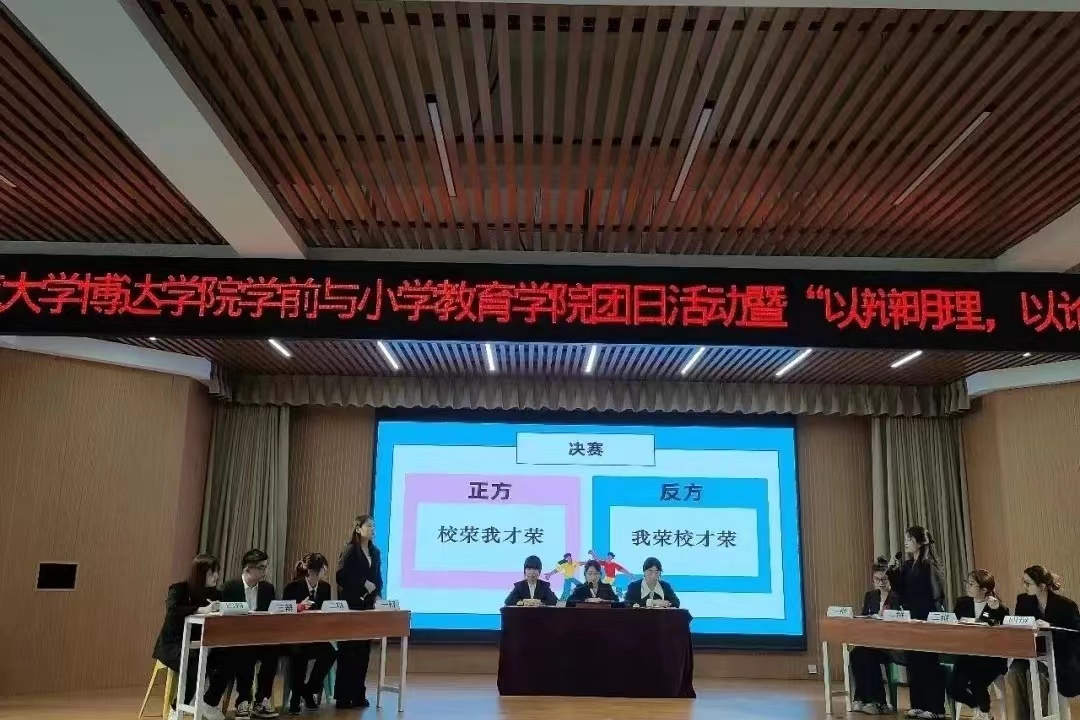 展青年担当,扬思辩新风。至此,本次团日活动暨“以辩明理,以论证言”主题辩论赛圆满结束。本次辩论赛不仅锻炼了我院学生的逻辑思维能力和应变表达能力,提高了同学们的团队合作能力,同时,也为学前与小学教育学院营造了勤于思考、善于思辩的良好氛围。