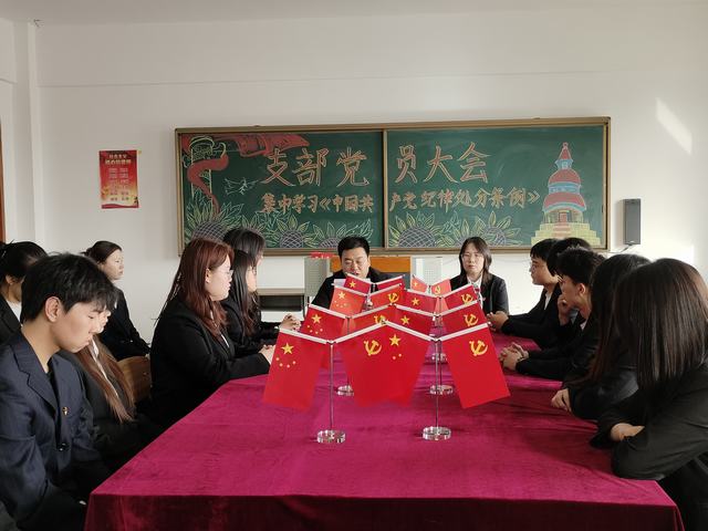 为进一步学深悟透习近平总书记关于党的自我革命的重要思想,组织开展好学前与小学教育学院党纪学习教育,引导党员干部学纪、知纪、明纪、守纪。学前与小学教育学院党支部于2024年4月25日15:30在综合楼1304教室开展了主题为“集中学习《中国共产党纪律处分条例》”的党员支部大会。出席本次会议的有学生工作办公室主任汤鹏宇老师,辅导员高馨老师以及21级学生党员。