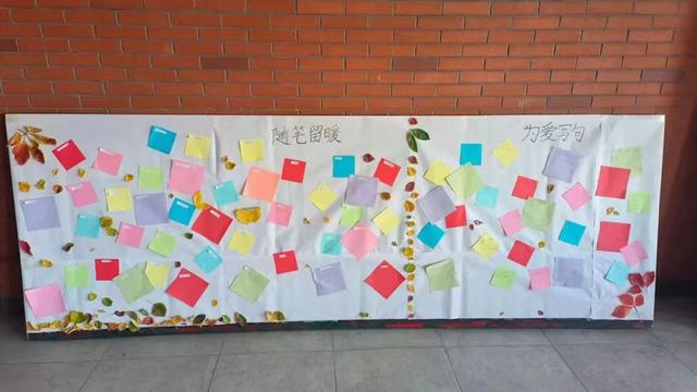 在第一板块诗歌拼贴创作中,同学们可以在标签箱中选择喜欢的字条,进行诗歌拼贴创作,寄托在不同诗词上的情感,在交流中碰撞出别样的火花。在第二板块半命题诗词创作中,同学们根据便签上已有的内容,自由书写属于自己的那一份诗词,纸笔间的碰撞,形成独特记忆,变成优美的文字落于纸上。