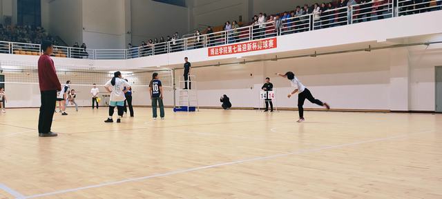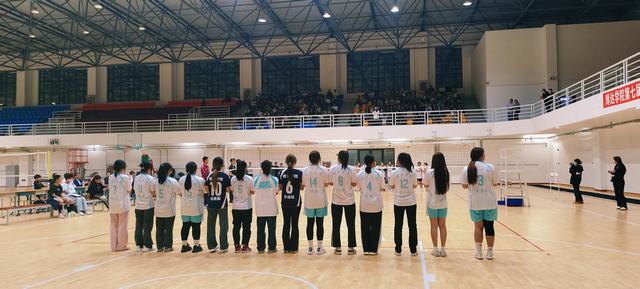 在体育馆中,随着裁判一声哨响,我院女排姑娘腾空而起,迅猛的发球、精妙的拦网、强有力的扣杀,比赛过程中,双方参赛选手互不相让、目光坚毅、全力以赴,将各自独特的风采发挥的淋漓尽致,扣人心弦的比赛让场下观众热情高涨,掌声接连不断。