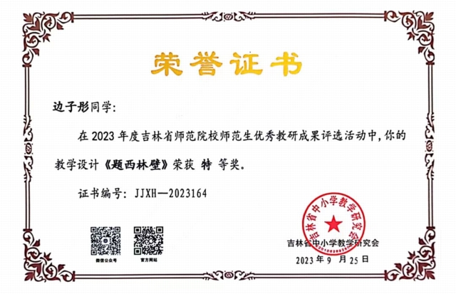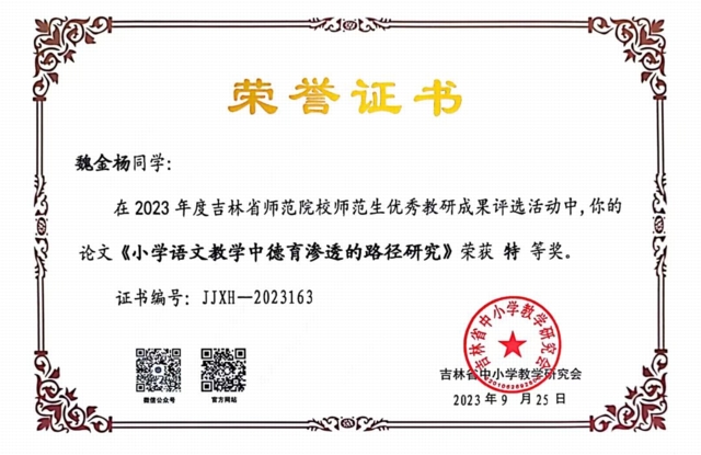 为落实教教育部《师范生教师职业能力标准(试行)》 和《义务教育课程方案和课程标准(2022版)》,引领师范生以问题为导向,加强教育教学研究,提高教学实践能力,吉林省中小学教学研究会组织开展了2023年度吉林省师范院校师范生优秀教科研成果评选活动,学前与小学教育学院学生积极参加。