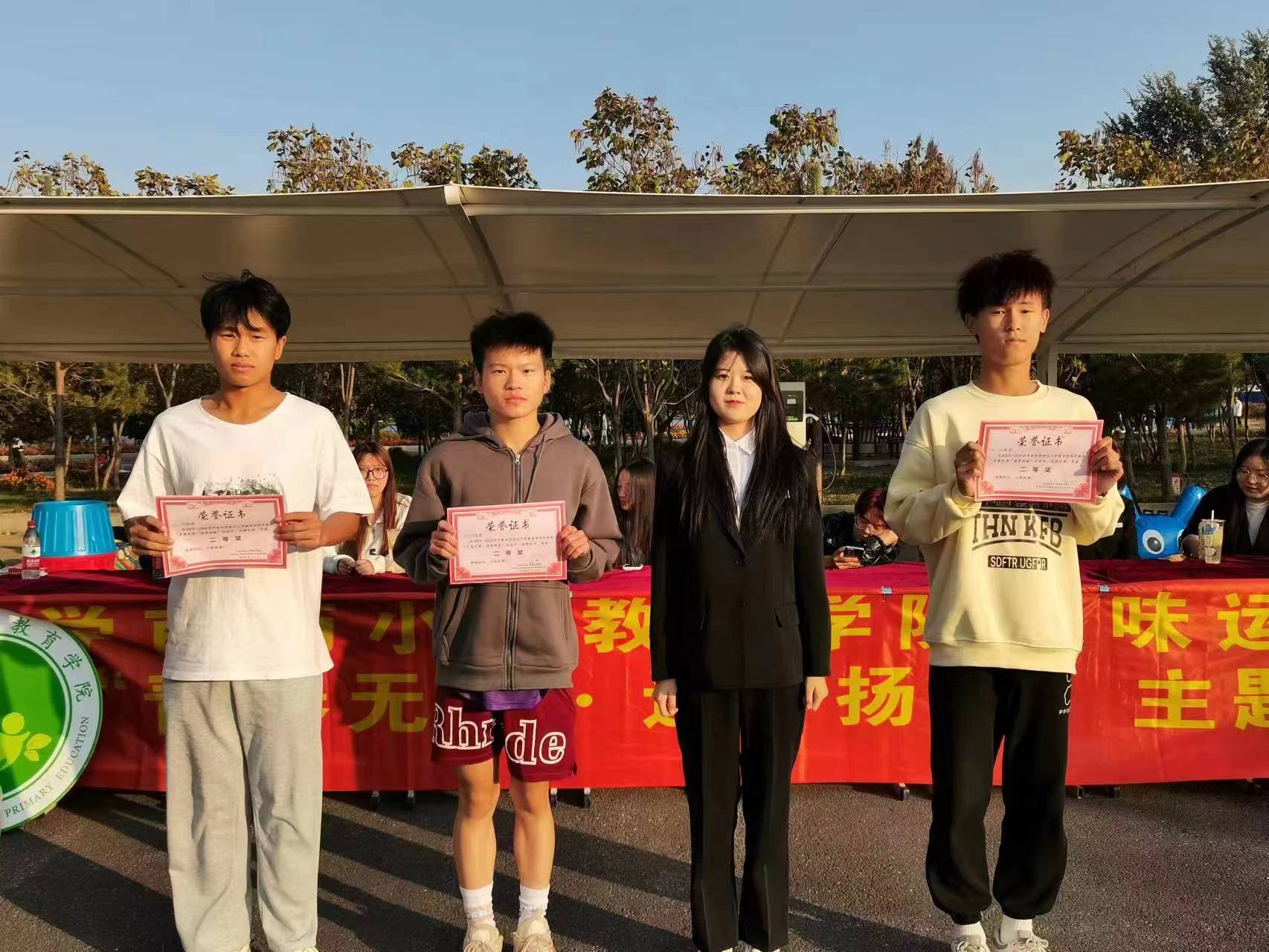 秋风习习,丹桂飘香,在这和顺的秋风里,为丰富我院学生的校园文化活动,加强同学们的班级凝聚力。学前与小学教育学院于2023年10月14日下午2:00在综合楼门前举办“青春无畏,逐梦扬威”主题趣味运动会。出席本次活动的有22级辅导员汤鹏宇老师、23级辅导员郑越洋老师,团学联部分学生干部以及2023级全体学生。