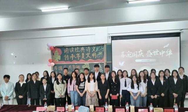 为了庆祝祖国母亲七十四华诞,学前与小学教育学院于2023年9月17日14:00在综合楼1118举办了以“诵读经典诗文,传承华夏文明;与国共庆华诞,携手奏响华章”为主题的朗诵大赛。出席本次活动的有:学前与小学教育学院专业技能教师陶可新老师、张东月老师,辅导员助理贾欣俪、刘璇,教学助理徐静,文语部部长余巧婷、副部长李想以及22级、23级部分学生。