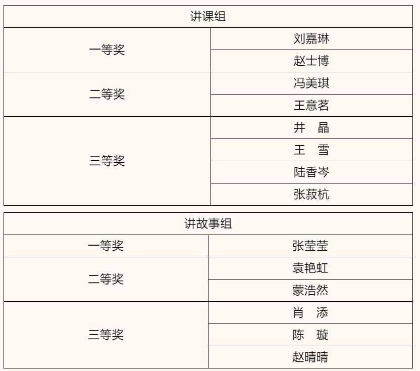 现场的评委老师和观众们认真聆听讲课全过程进行简要点评,最后为选手们打分,评出一等奖、二等奖、和三等奖,并为其颁奖!获奖名单如下: