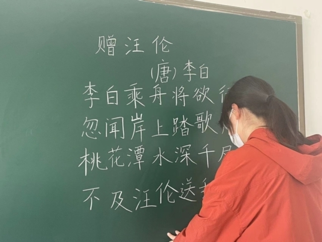每周背诵并讲解一首小学古诗词,体会古诗中的情感及意义。讲解古诗时,带领学生理解古诗当中的深刻内涵,体会作者心情。用饱满的情绪,吸引学生的兴趣,提高学生的听课积极性。