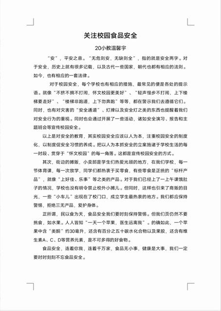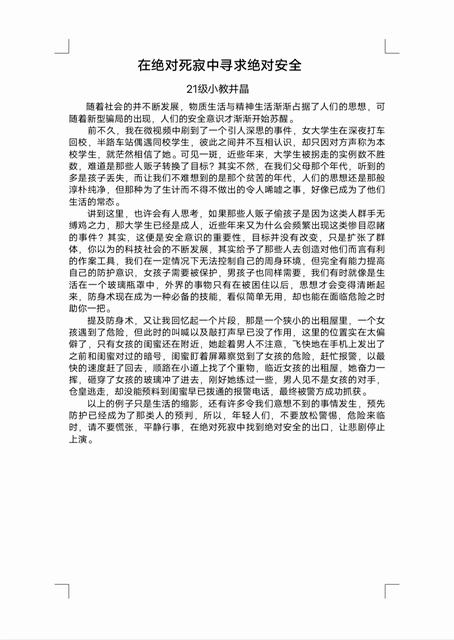 “冒险是事故之邻,谨慎为安全之本。”安全是人们工作生活的重中之重,是幸福安宁的基本保障,社会是多元的纷繁复杂的,哪怕是生活中最微不足道的小事,也可能存在着危险。正所谓安全无小事,事事记心间,为了增强我校学生的安全意识,提高个人思想素质,预防和减少安全事故的发生,学前与小学教育学院文化部特开展安全宣传作品评选活动。
