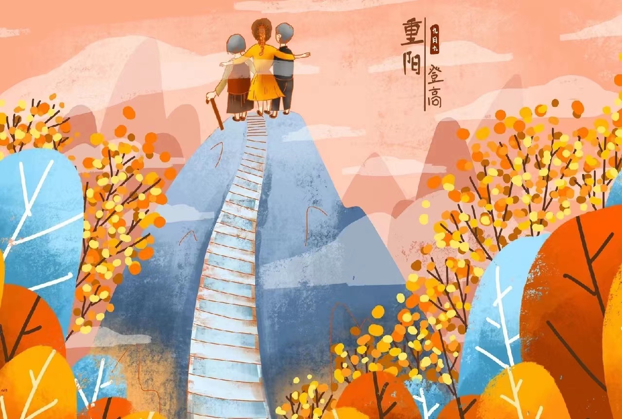 重阳节,又称“踏秋”,中国民间传统节日。每年的农历九月初九,为传统的重阳,因为古老的《易经》中把“六”定为阴数,把“九”定为阳数,九月九日,日月并阳,两九相重,故而叫重阳。庆祝重阳节一般包括出游赏景、登高远眺、赏菊花、插茱萸、吃重阳糕、饮菊花酒等活动。
