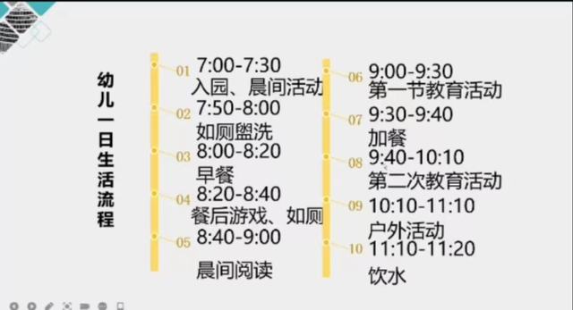 讲座开始,王春英老师对幼儿园一日流程中的常规培养进行讲解。老师向同学们展示了入园、如厕、进餐、饮水、服药、教学活动、户外活动、午睡、离园等方面的具体实施流程,帮助同学们学习幼儿园一日流程,掌握从业技巧。
