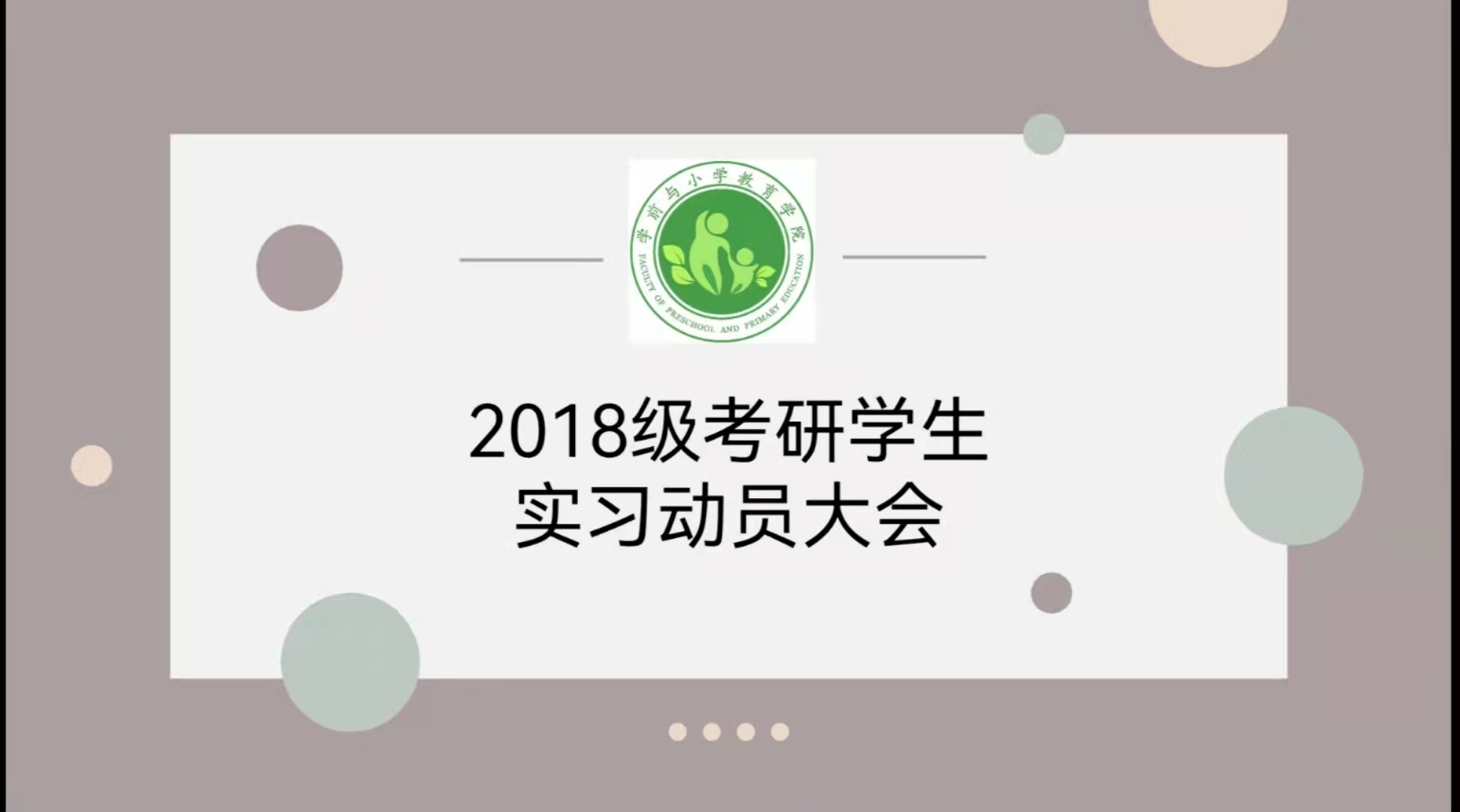 为有序开展学前与小学教育学院考研学生的实习工作,学前与小学教育学院于2021年12月30日18:00召开了18级考研学生的实习动员大会,出席会议的人员有:小学教育专业负责人韩秋慧老师、学前教育专业负责人孟令军老师、早期教育专业负责人李楠老师和18级辅导员鞠佳鑫老师以及18级全体考研学生。