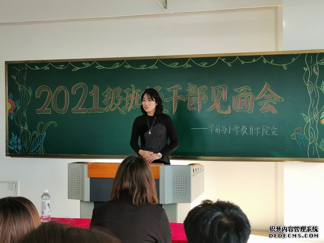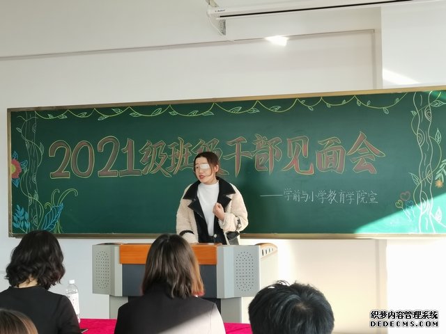 吉林师范大学博达学院学前与小学教育学院于2021年10月27日14:00在综合楼1316教室召开了2021级班级干部见面会。参与本次会议的有:学工办主任宋佳老师、兼职辅导员贾润竹老师、学生会秘书处部长黄凯茹、学生会主席马金成以及21级全体班级干部。