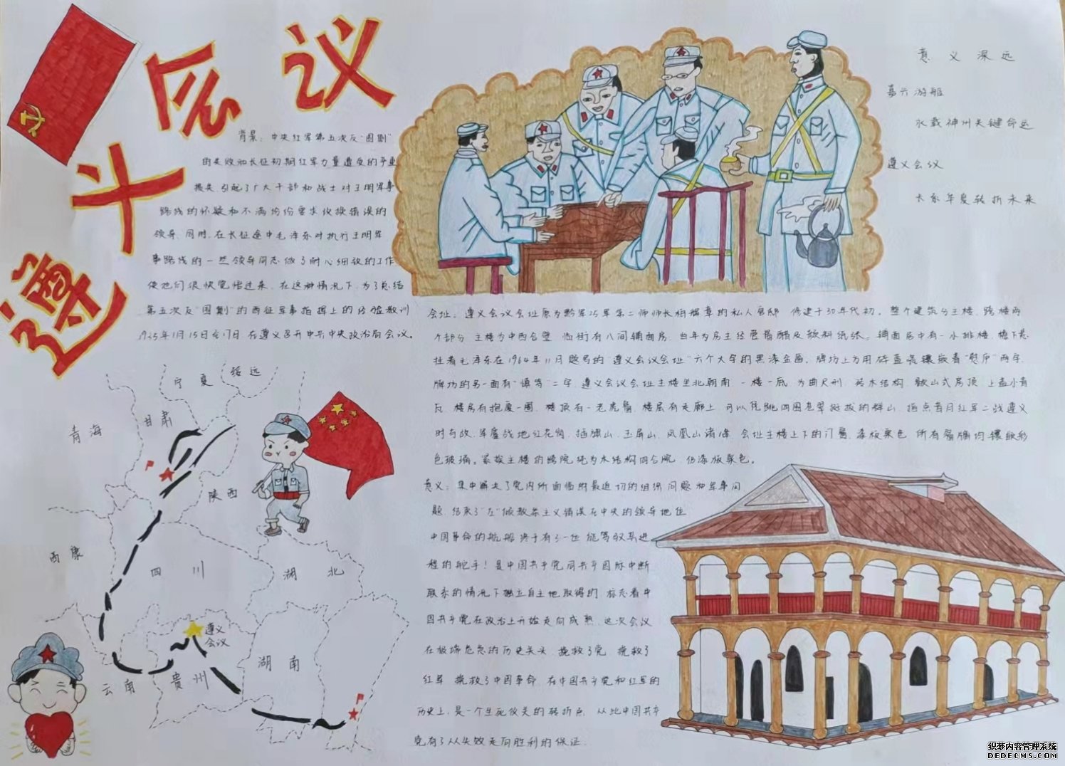 为庆祝中国共产党成立100周年,讴歌中华民族伟大复兴中国梦光辉的奋斗历程,鼓励新时代大学生追寻革命先辈的光辉足迹,发扬“使命在肩、奋斗有我”的精神,学前与小学教育学院特举办“党建专栏——故事里的中国”活动,本期专栏主要讲述遵义会议,主要参赛作品类别为绘画。