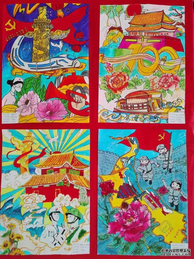 在本次画展中,学生们充分发挥想象力,分别以我国的国宝熊猫、首都天安门、中国龙、传统京剧、豫剧等为原型,以中国梦、抗疫精神、农业发展、科技进步等为角度,画出了巧夺天工的精品之作。这些作品生动灵逸、随意洒脱、气势磅礴……吸引了众多师生的目光,同时充分歌颂了百年建党的光辉岁月和建国以来的伟大成就。