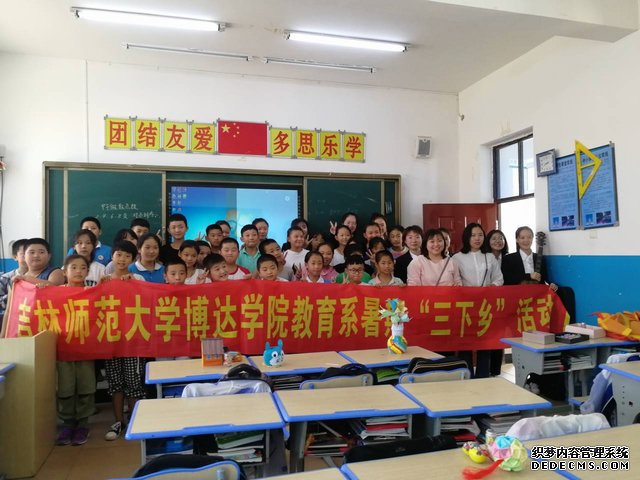 活动伊始,“三下乡”成员集体合影留念,为当日的活动拉开序幕。进入教室后,“三下乡”成员首先进行活动介绍与自我介绍,让孩子们初步了解本次活动。本次活动共有演出与宣讲两大主要环节,演出有唱红歌、革命短剧等活动形式。随后,由秘书处处长沈欣羽进行红色古迹宣讲并主持礼物发放环节,通过问答竞猜的方式,巧妙调动了孩子们的积极性,使“三下乡”活动的开展更加顺利。接下来,由大学生自学组织总会部长张涵吉他弹唱,将活动氛围推向新高潮。活动最后,由各位党员精心总结,通过理论与实践结合的方式,达到一动一静,知行结合,最终成功的为孩子们展现了一场内容丰富、形式多样、一心向党的“三下乡”活动。至此,本次活动正式拉下帷幕。