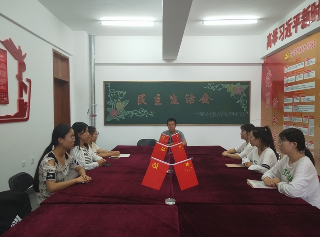 2019年9月5日16:20,学前与小学教育学院在综合楼三楼党员活动室召开了“组织生活会”,学生党支部书记柳志明同志担任本次会议的主讲人,全体党员参加了会议。