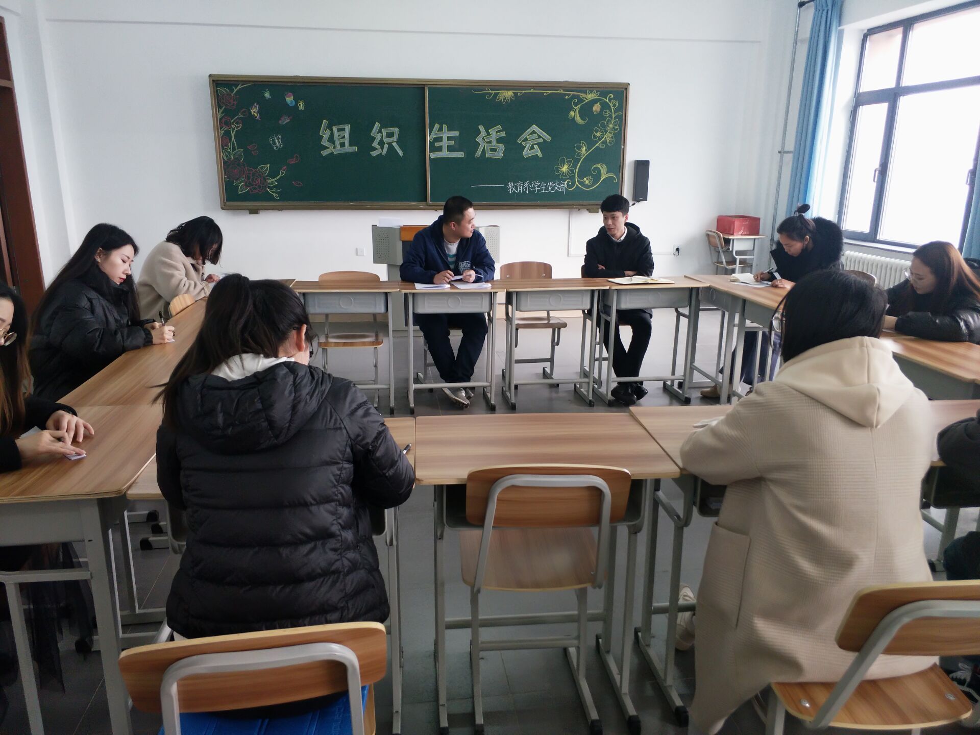 2019年2月27日,教育系学生党支部于综合楼1304教室召开2018年度党支部组织生活会。参会的人员有:党委组织员张洪源老师,教育系学生党支部书记常海涛老师,辅导员李扬老师,辅导员崔馨月老师,学生党员及预备党员。